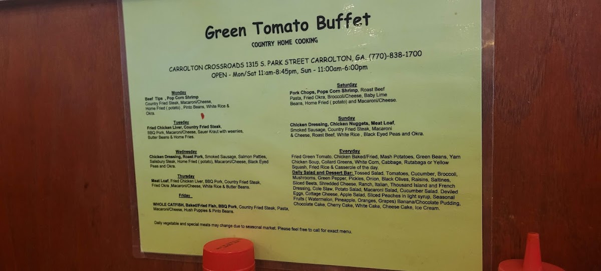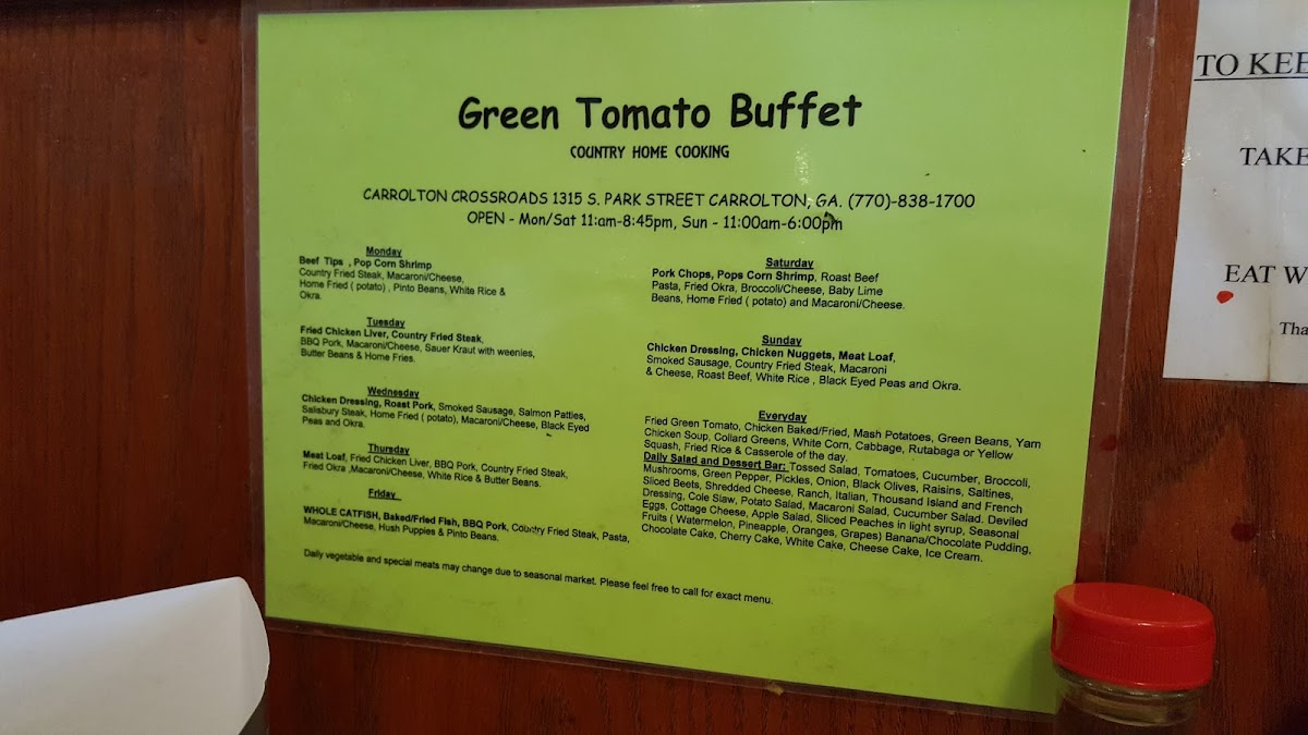 Welcome to Green Tomato Buffet, where comfort food meets exceptional dining in Carrollton, GA. Located at 1315 S Park St, this buffet offers a delightful array of dishes that cater to every palate.